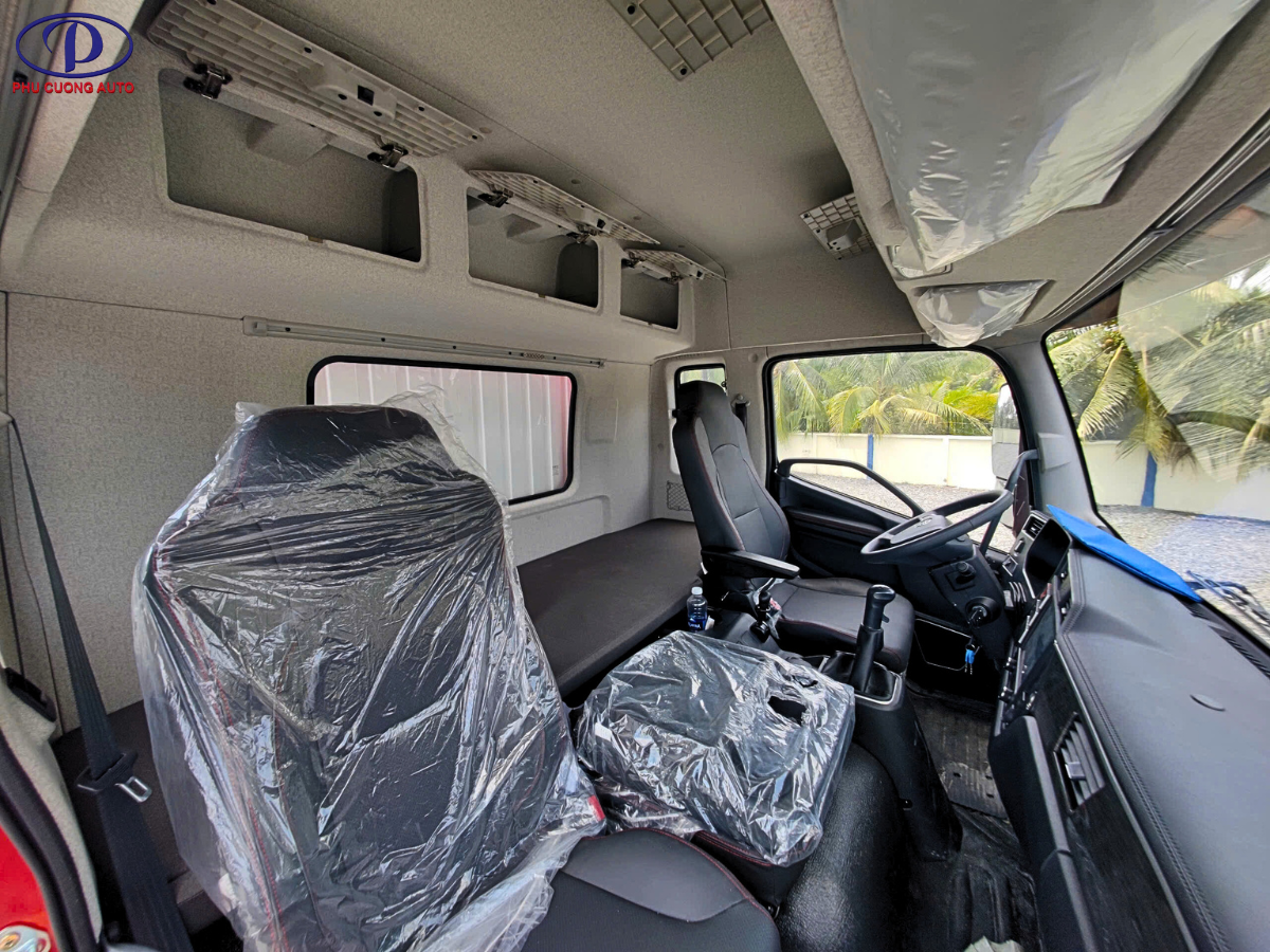 Điểm nổi bật đầu tiên chính là cabin nóc cao, được thiết kế với 03 ghế ngồi rộng rãi và 01 giường nằm thoải mái. Đây là một ưu điểm vượt trội, đặc biệt hữu ích cho những chuyến đi đường dài, giúp tài xế có thể nghỉ ngơi và thư giãn sau những giờ lái xe căng thẳng.