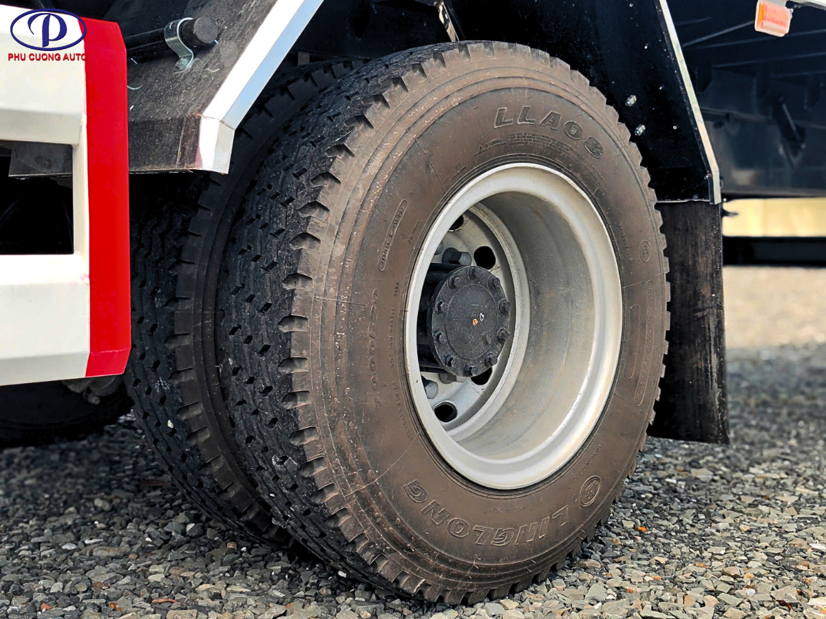 Khả năng vận hành mạnh mẽ và an toàn của xe được củng cố bởi hệ thống lốp nhập khẩu với kích thước 10R20. Loại lốp này không chỉ mang lại độ bám đường tốt, giúp xe di chuyển ổn định trên mọi địa hình, mà còn có khả năng chịu tải cao, đảm bảo an toàn cho hàng hóa và người lái.