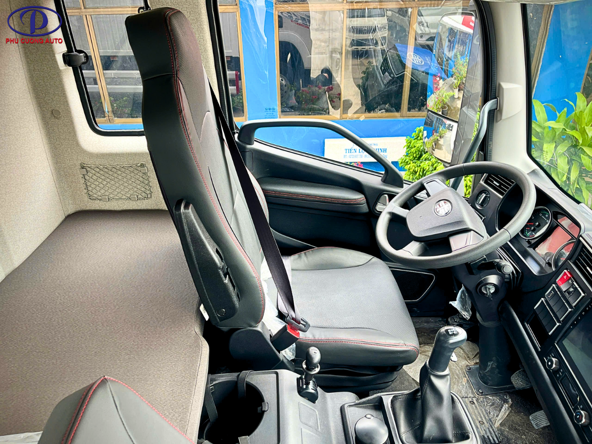 Xe được trang bị đầy đủ các options hiện đại như kính chỉnh điện một chạm, chìa khóa tích hợp cảm biến khóa mở từ xa, học chứa đồ rộng rãi, và hệ thống nâng hạ cabin bằng điện. Tất cả những tính năng này được thiết kế để tạo ra một không gian làm việc thoải mái và thuận tiện nhất cho các bác tài.